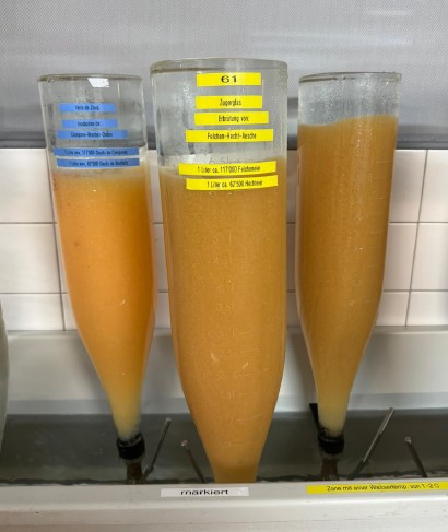 Die kleinen Früchte (Schorniggel genannt) wachsen rasch und müssen bald auch mit dem Regendach vor kräftigen Regengüssen geschützt werden. Denn die reifen Früchte können platzen und dann nicht als Tafelware in die Verkaufsregale gelangen.